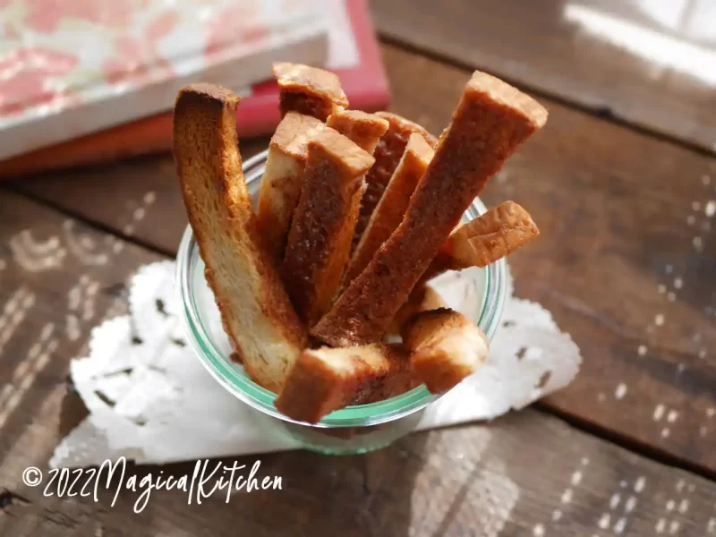サクサクかりっとシナモンラスク、スティック状にしてつまみやすく。